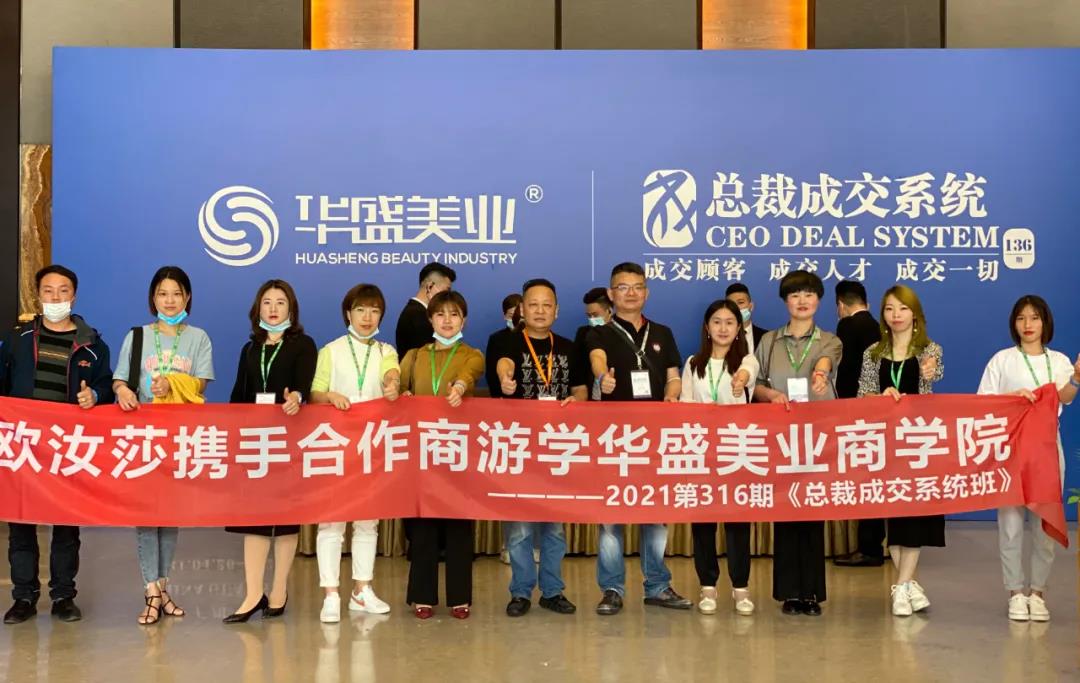 2021年4月26日-28日,欧汝莎董事长严红安、品牌总监罗康携手加盟商参加美业行业领先的华盛美业商学院“总裁成交系统班”。