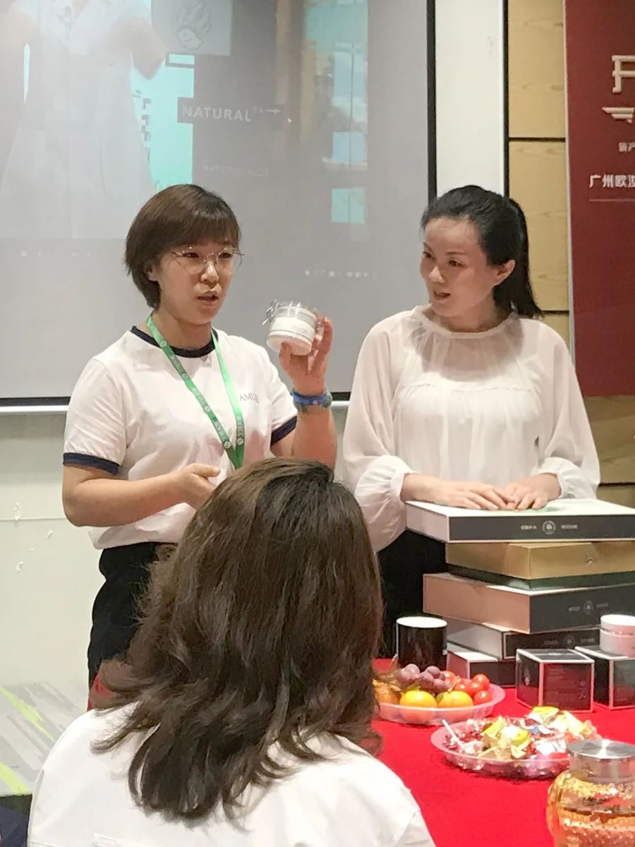 分享结束后,欧汝莎公司管理人员带领加盟商参观公司,为加盟商讲解品牌规划、了解产品知识、分享美容技巧……让加盟商感受到公司的力量,也加强了总部与加盟商之间的连接。