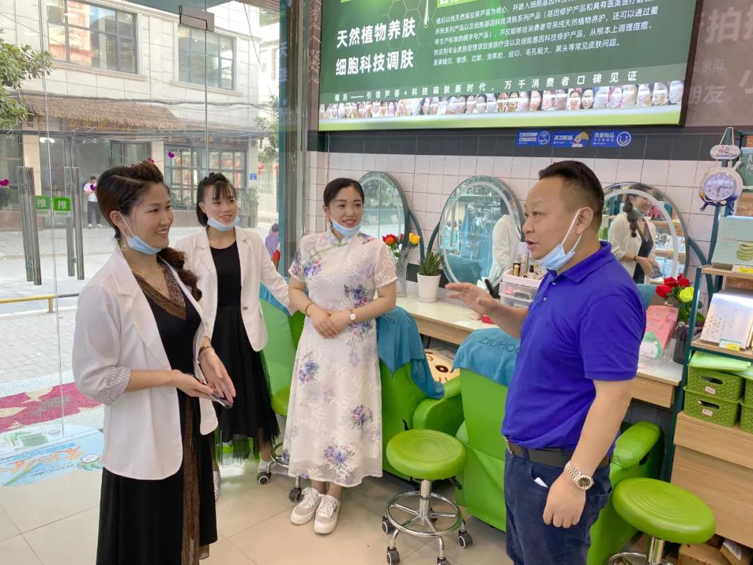 紧接着,严总和罗总来到四川省资阳市安岳县植后加盟商李文门店,为加盟商带去了宝贵的运营经验和欧汝莎总部最真诚的慰问!