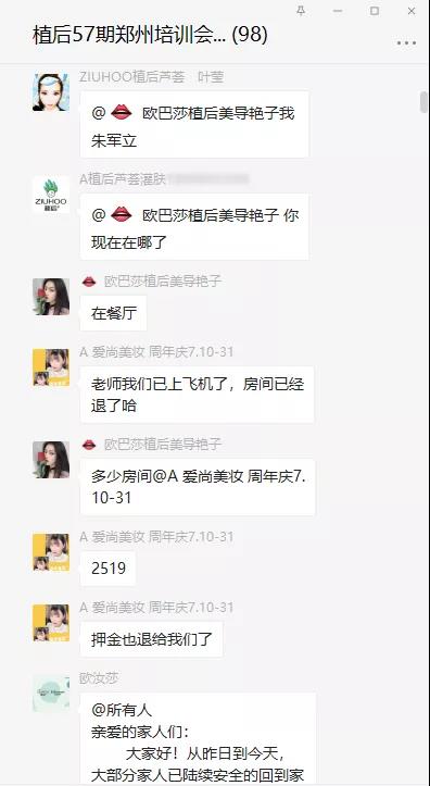 公司工作人员安抚好在场各加盟商和安排好加盟商的住宿后,将郑州下大雨的信息急速反馈给总部。截止24日,所有参加培训的加盟商已安全回到家。